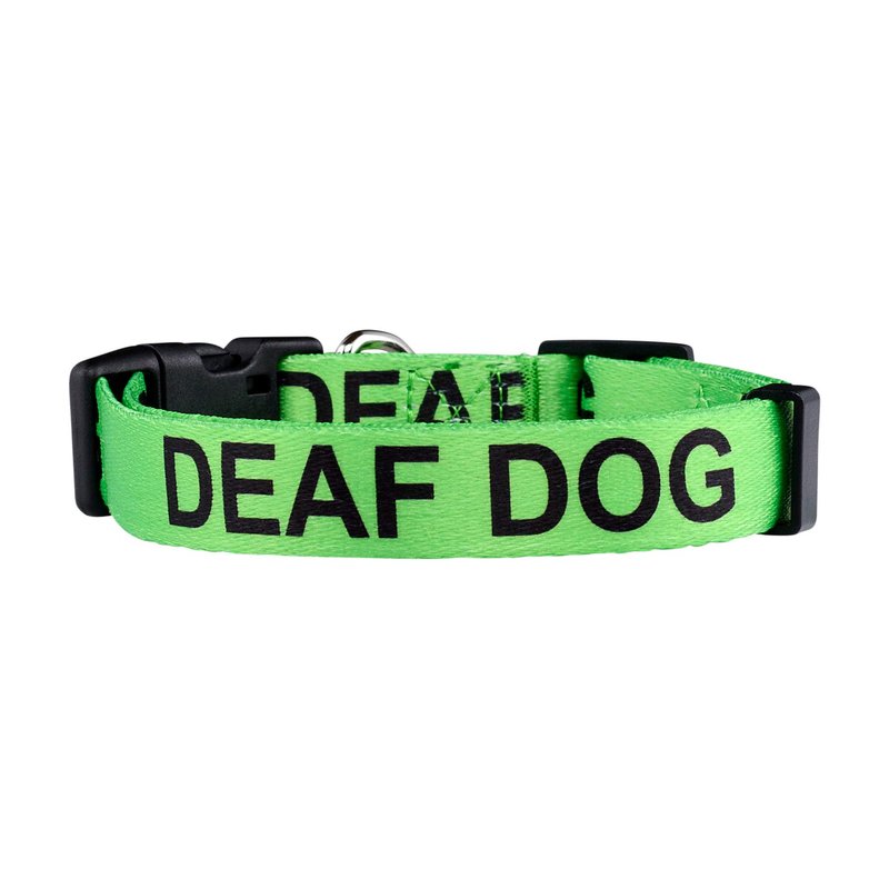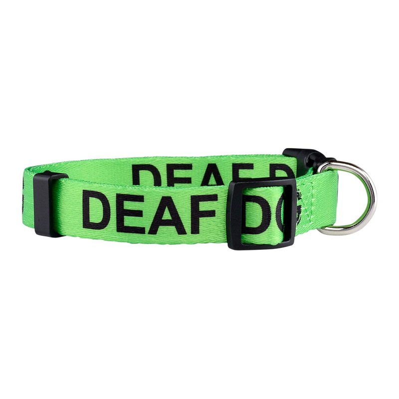 Our Deaf Dog Collar is the perfect affordable choice to alert those around your dog of his/her hearing limitations. The vibrant green collar will immediately attract attention for the safety of your pup.