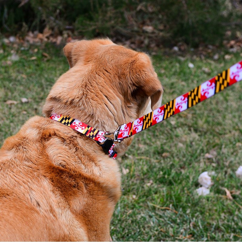 - DURABLE: These Maryland Flag Dog leashes are made of durable polyester that’s impossible to tear. A strong metal clasp will easily secure to any collar or harness.