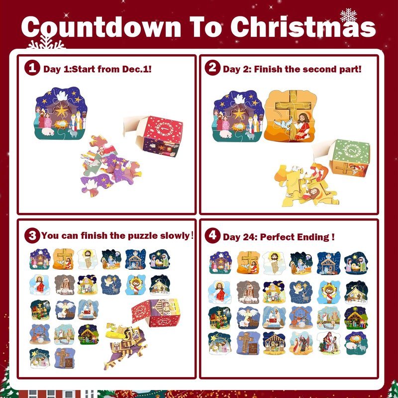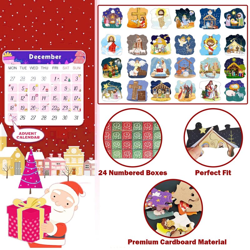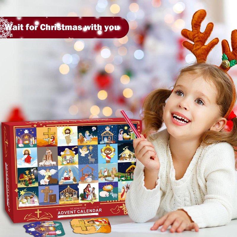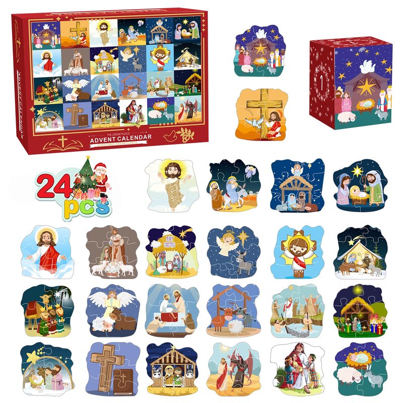 Nativity Puzzle Advent Calendar Toddler, Nativity Puzzles Family Game Christmas Gifts for Kids Adults,Nativity Calendars Xmas Suprise Gift