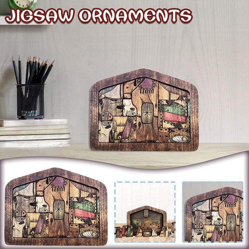 Nativity Puzzle, Wooden Jesus Puzzle Statue, Wood Burned Design, Sculpture Decor for Kids Ages 3-5 and Adults, Home Educational Wooden Puzzles Birthday Gifts (7.9 x 5.9 in)