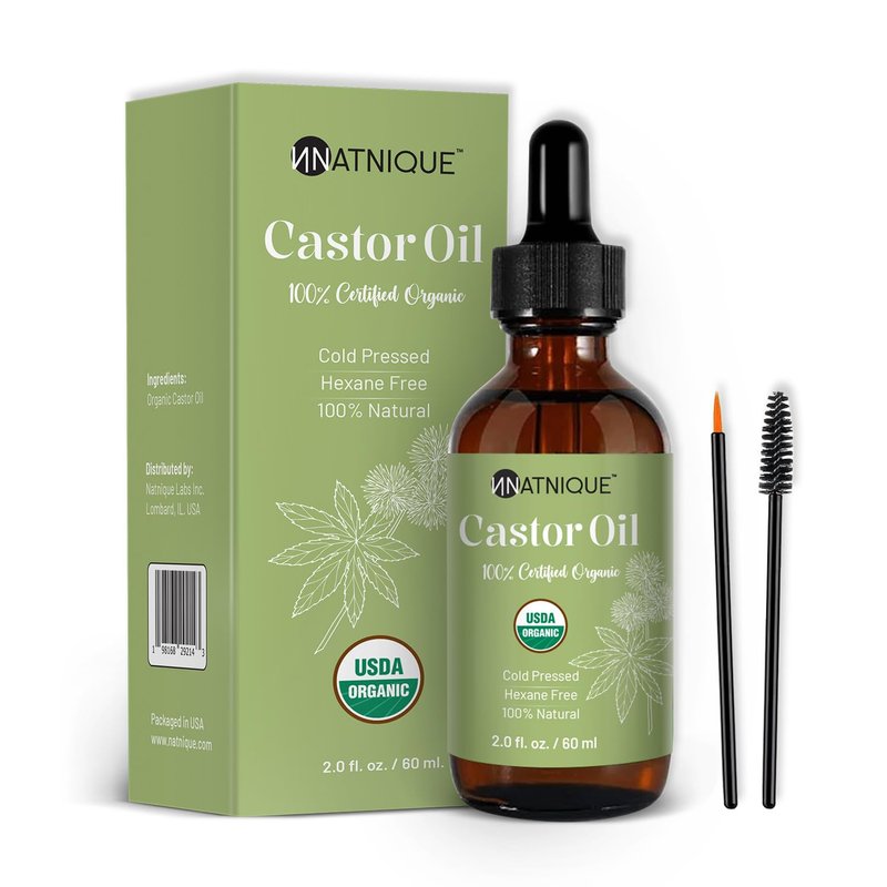 PURE ORGANIC USDA CERTIFIED ORGANIC CASTOR OIL - Natnique’s Organic Cold Pressed Castor Oil is 100% Pure Virgin Castor Oil and it is certified by USDA. It only has one ingredient! Pure Organic Castor Oil!