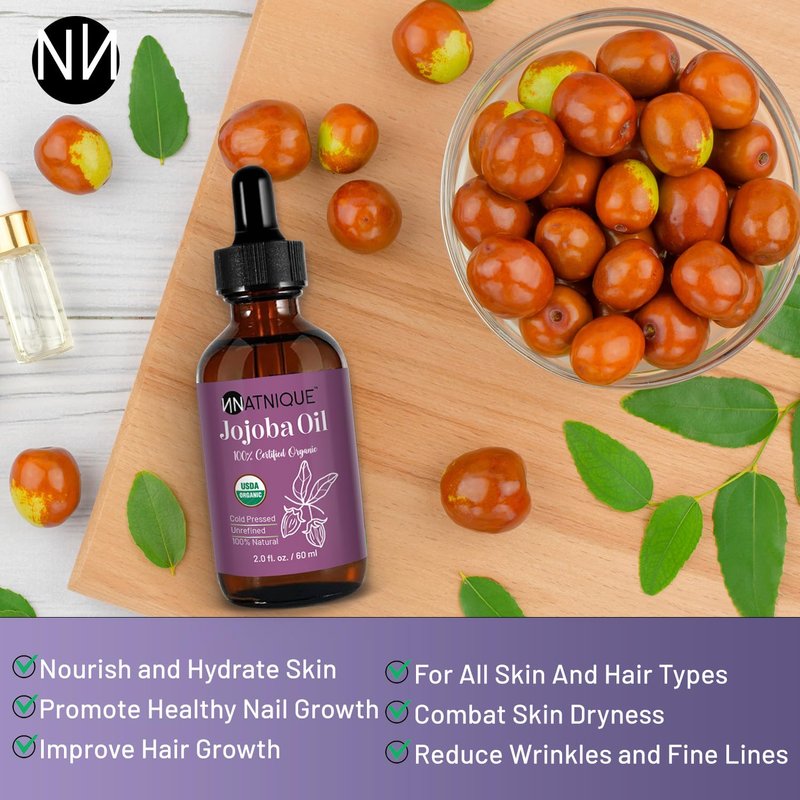 PURE ORGANIC USDA CERTIFIED JOJOBA OIL FOR HAIR – Natnique’s organic cold pressed Jojoba oil is 100% pure, natural, unrefined, and is certified by USDA. Proven results to give you a soft, smooth and radiant skin.