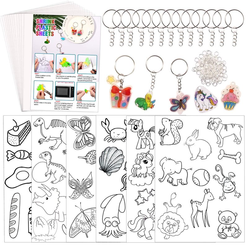 - Endless Possibilities: Let your imagination run wild with 20 blank shrink dink sheets, 6 traceable pictures, and 120 keychain accessories.