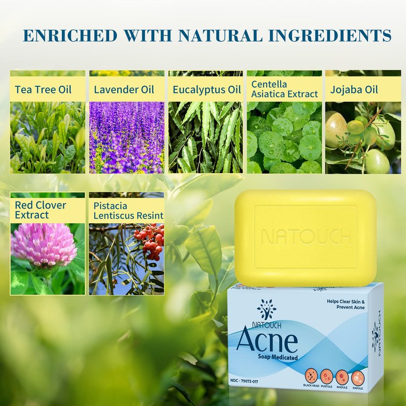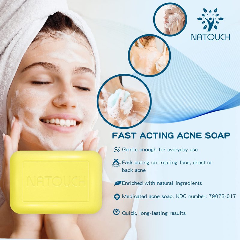 Natouch Acne Treatment Soap Bar, Antifungal Medicated Soap Bar, Acne Body Wash with Salicylic Acid, Acne Scars and Dark Spot Remover with Natural Essential Oil for Face, Body, Back, and Butt