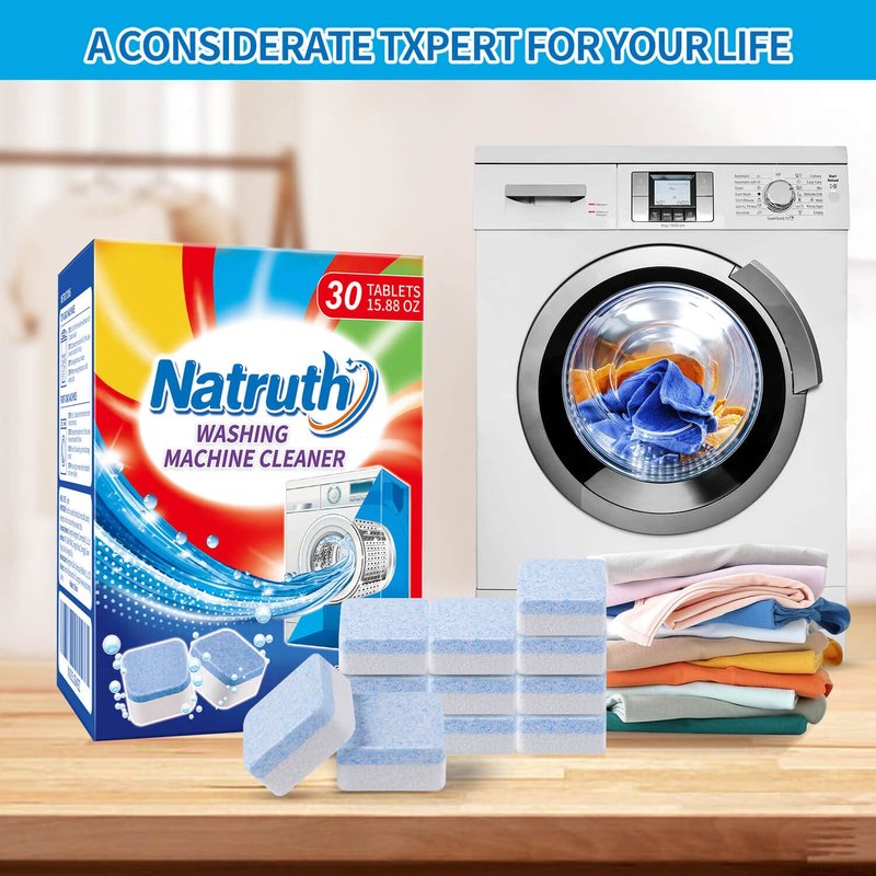 NATRUTH Washing Machine Cleaner Descaler 30 Count,Triple Decontamination Remover with Natural Formula,Deep Cleaning Tablets For HE Front Loader & Top Load Washer