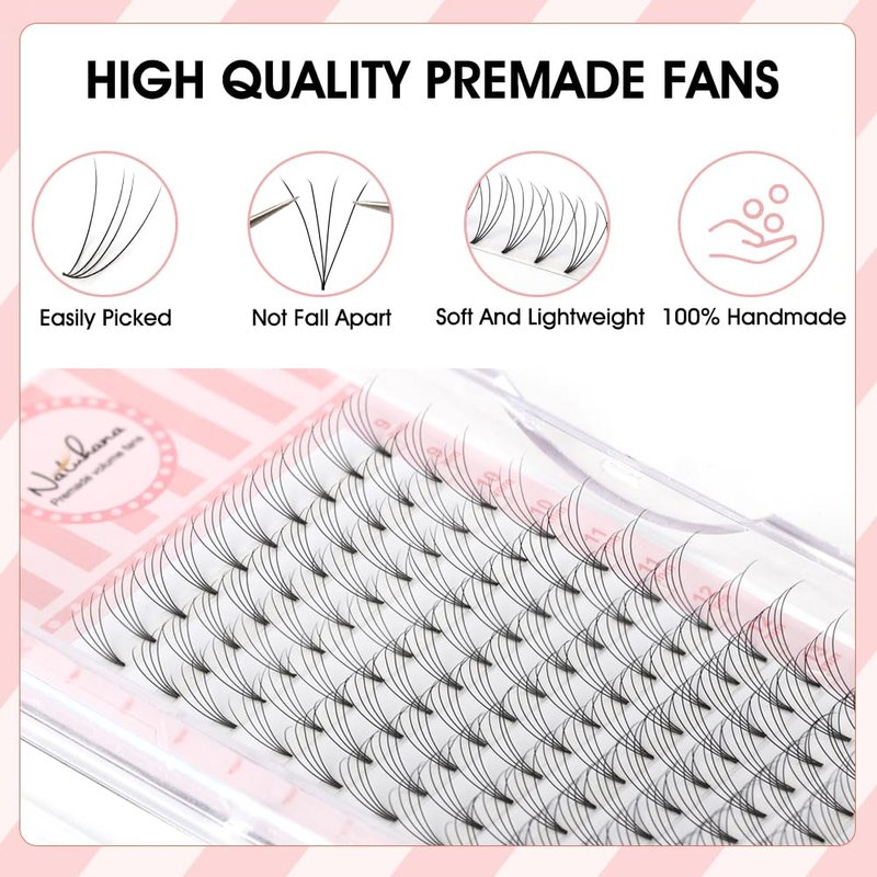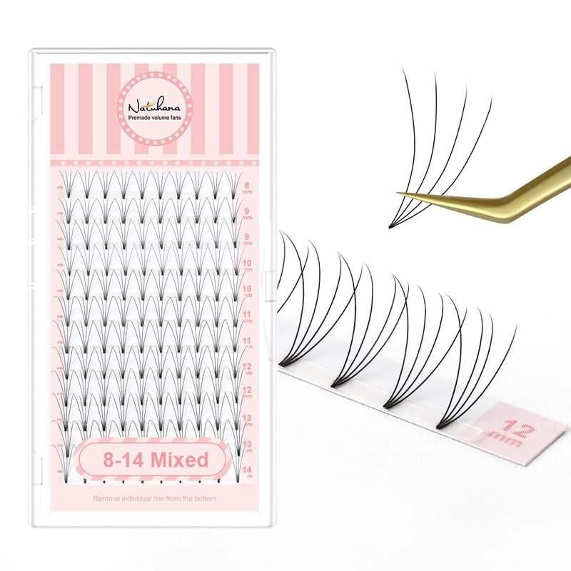 - ❈[Perfect Choice]There are 3D 4D 5D 6D 8D 10D short stem premade wispy fans ,natural black ,C/D curl,0.07mm thickness,mixed lengthes in one tray ,8-14mm mixed or 9-15mm mixed tray for you to choose,12rows per case,easily for you to diy your own lashes.