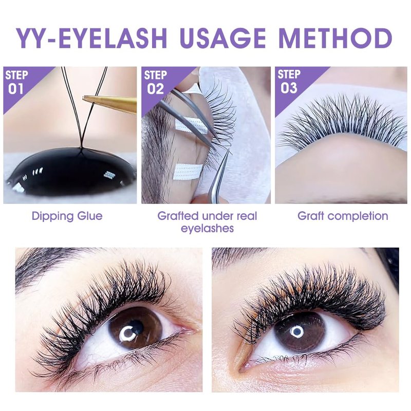 - ❈[Easy to Graft] Y-shaped eyelashes can automatic YY weave to form flowering,no need to make fan manualy,graft one piece equals two pieces,getting blooming lash effect instantly,creates a strong three-dimensional looking and improves grafting speed greatly .