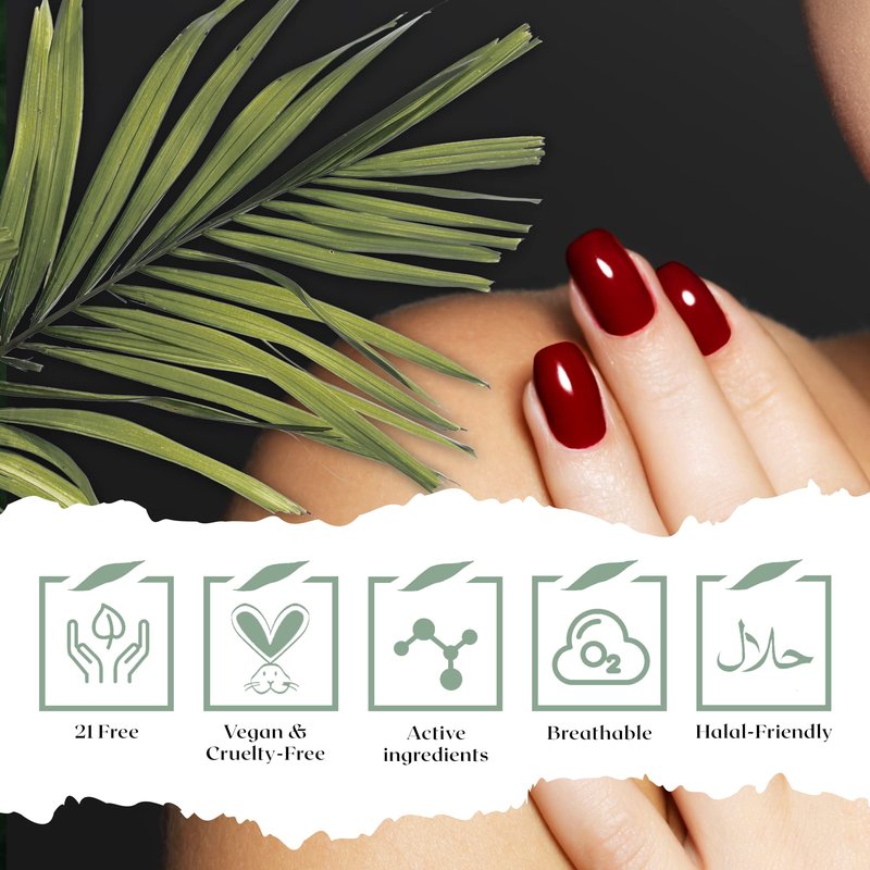 - BREATHABLE & HALAL-FRIENDLY - Breathable vegan nail polish doesn't just protect your nails from damagе, but allows water and air to flow through it without damaging the nail varnish in any way!
