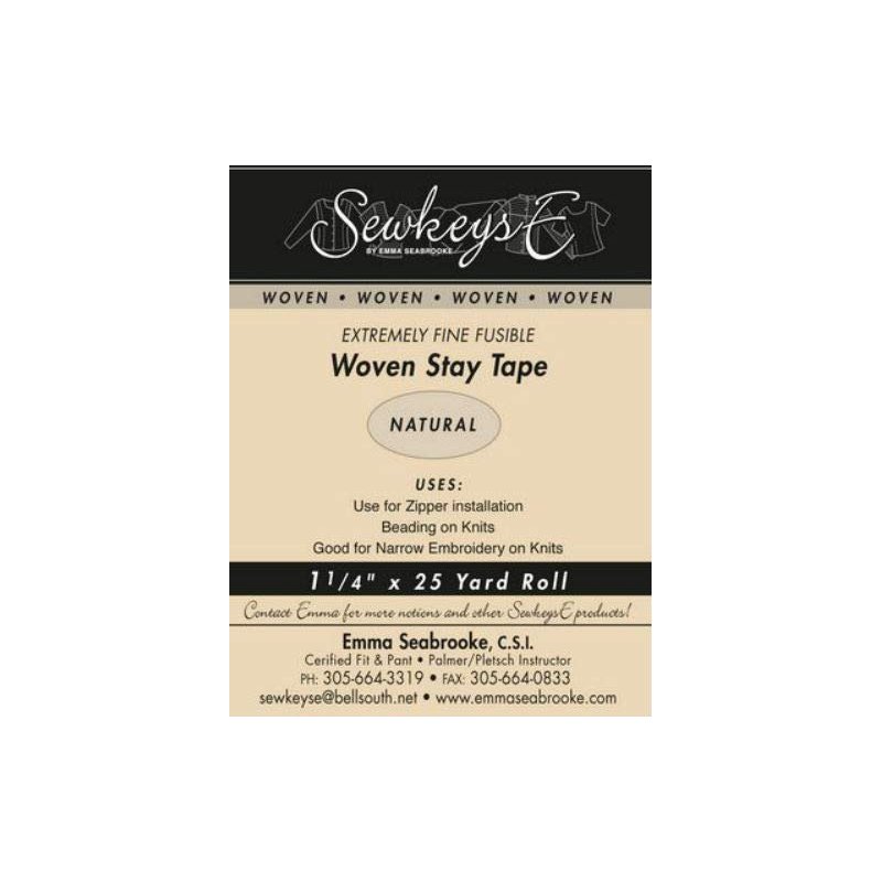 This fine fusible stay tape works well for zipper installations, beading on knits, stabilizing seams, also good for narrow embroidery on knits, or anywhere else where you may need a narrow strip of stabilizer. Sold by the 25 yard roll. Natural - 1.25" Woven Stay Tape - 1.25" X 25 yards SewkeysE Extremely Fine Fusible Tape Sold by the 25 yard Roll (SST1.25-NAT) M494.15 Combine with other items from our store for a shipping discount!