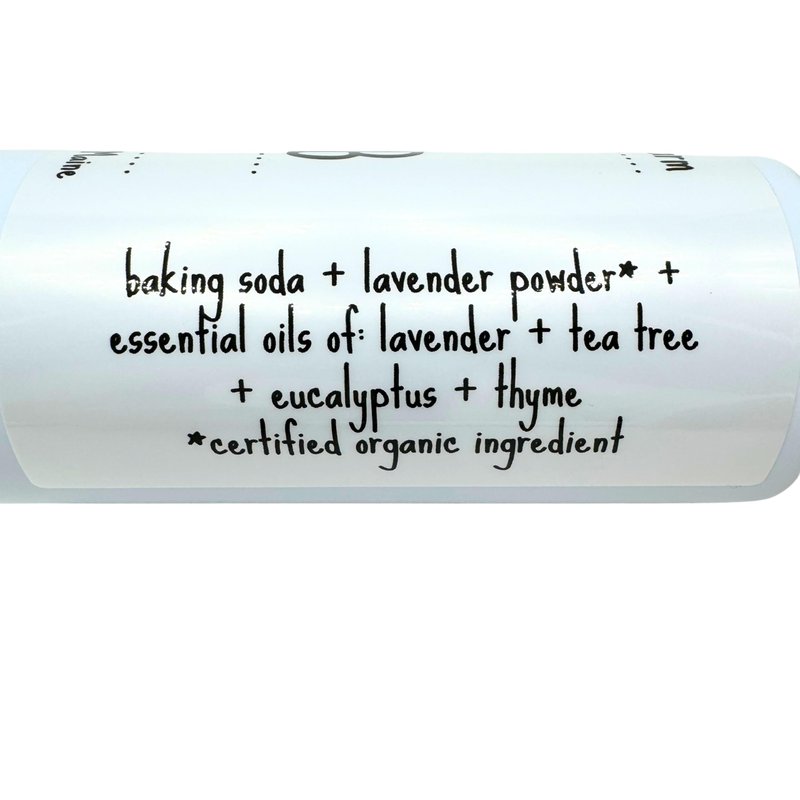- Made with pure essential oils, baking soda, and organic lavender flower powder.