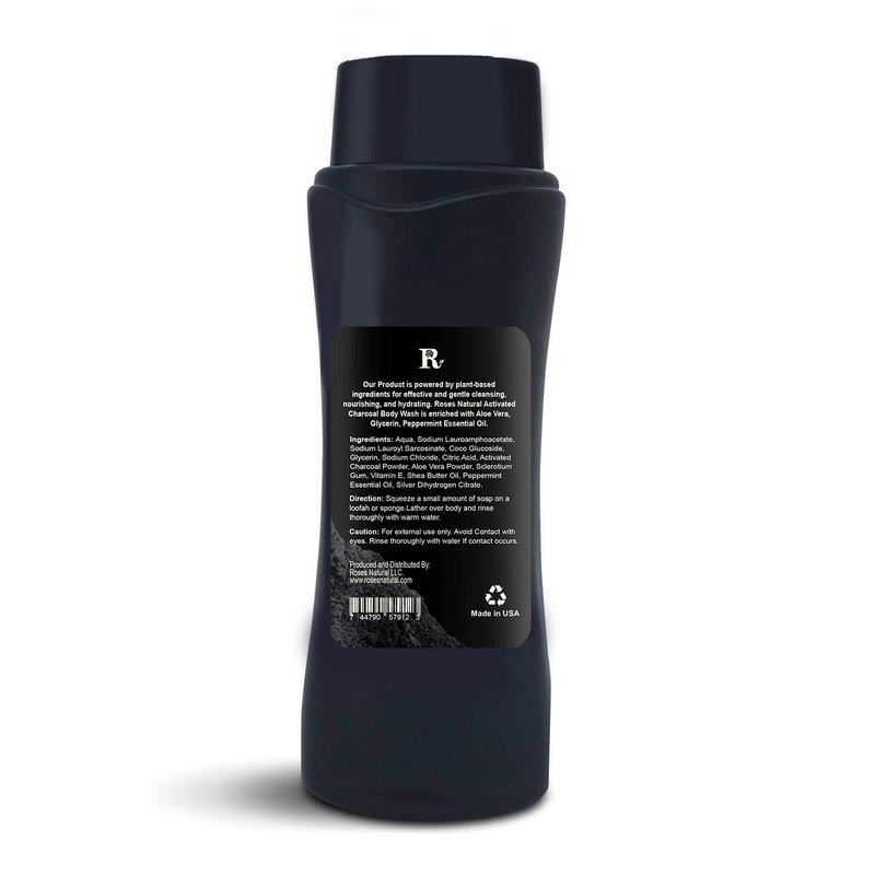Roses Natural Activated Charcoal Body Wash is your new best friend This special blend is powered by plant-based ingredients and activated charcoal to cleanse. nourish. and hydrate your skin gently. while combating clogged pores and dull complexion Country of Origin:- US