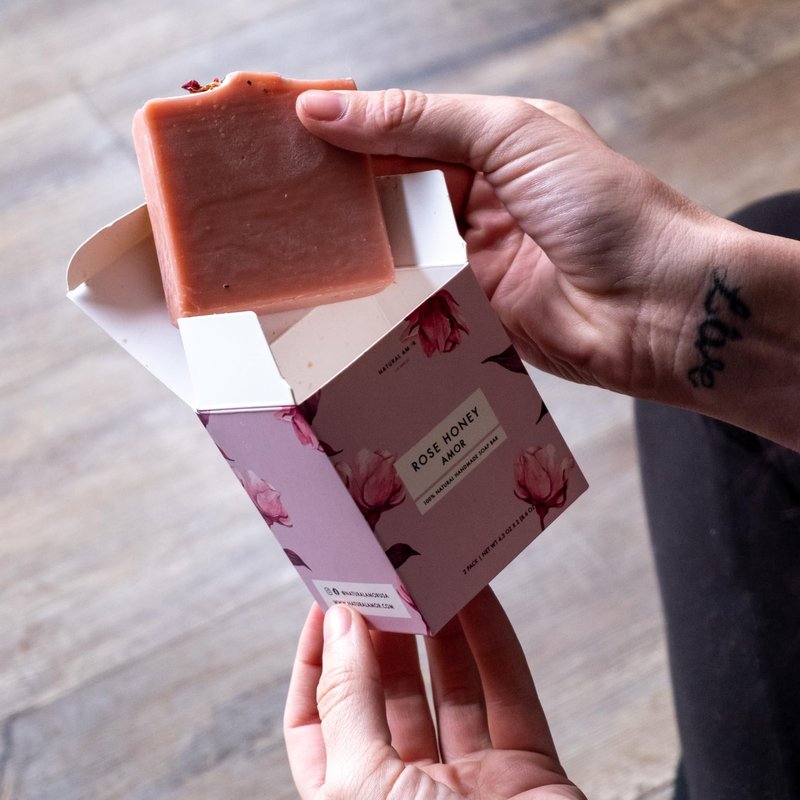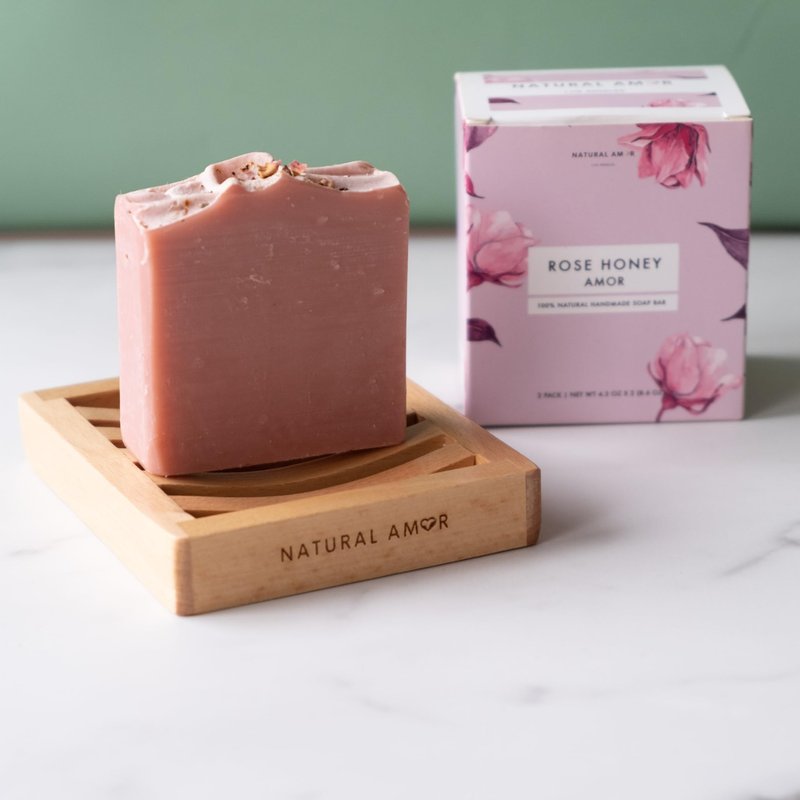 Natural Amor All-Natural Handmade Organic Soap Bar Set, Rose Honey Amor Soap Kit with pure Essential Oils, Gentle Body & Facial Soap for Unisex-adult,Total 8.6 oz, Made in USA, 2 Pack