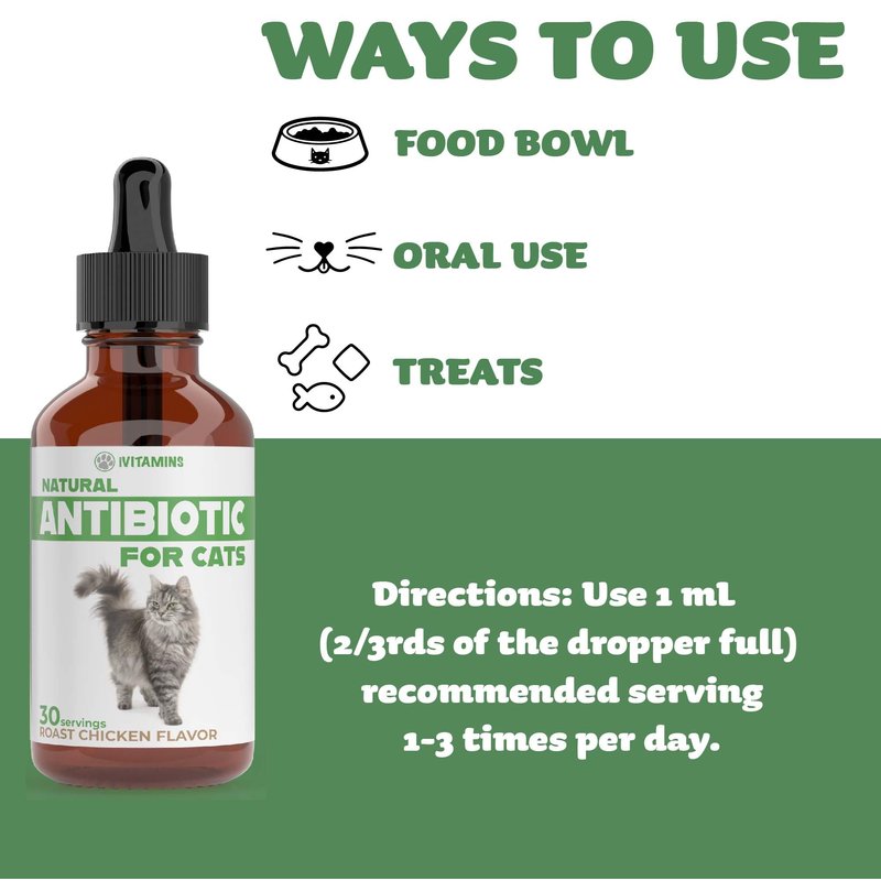 - ALL NATURAL ALTERNATIVE TO CHEMICAL ANTIBIOTICS: the newest and improved formula! No artificial additives! Just our Antibiotic for Cats - in liquid form!