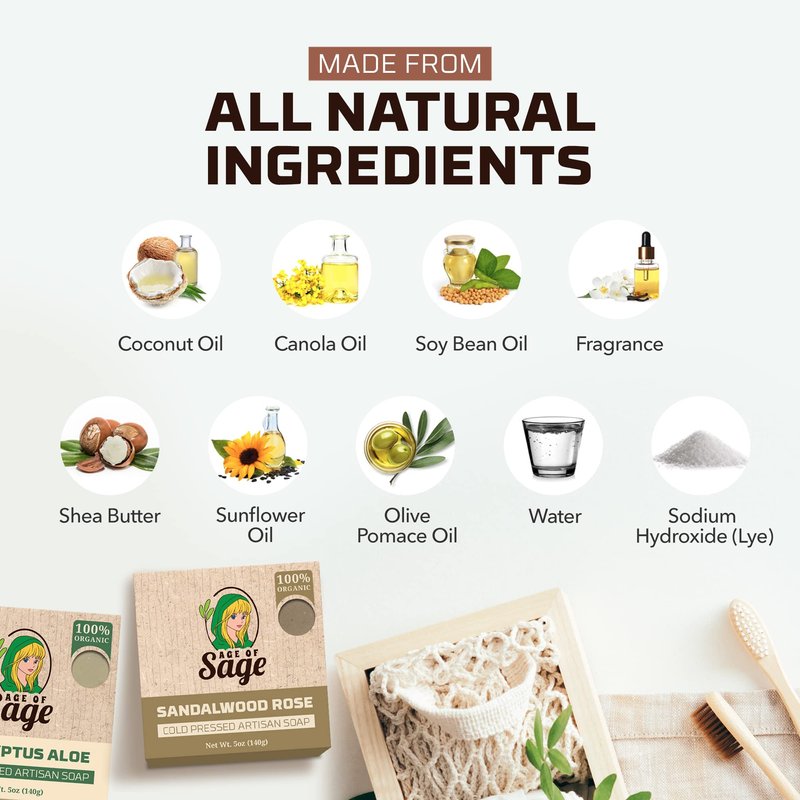 - MEN'S SOAP BAR MASCULINE SCENT: Rejuvenate your mind, body, and soul as Age of Sage lets you feel an excellent bathing shower experience with its Handmade Masculine Scent mens bar soap. Each body bar soap is made with a distinctive natural soap for men or a masculine-inspired fragrance that cleanses your skin while keeping it moisturized and nourished.