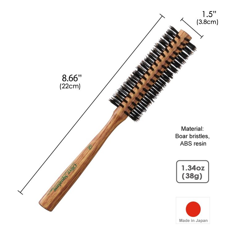 Looking for a unique boar bristle round brush? Well, you've just found one now! This made-in-Japan boar bristle round brush contains premium olive oil in the bristles as a beauty essence, thus, offering a soft and smooth stroke while moisturizing and enriching your hair.
