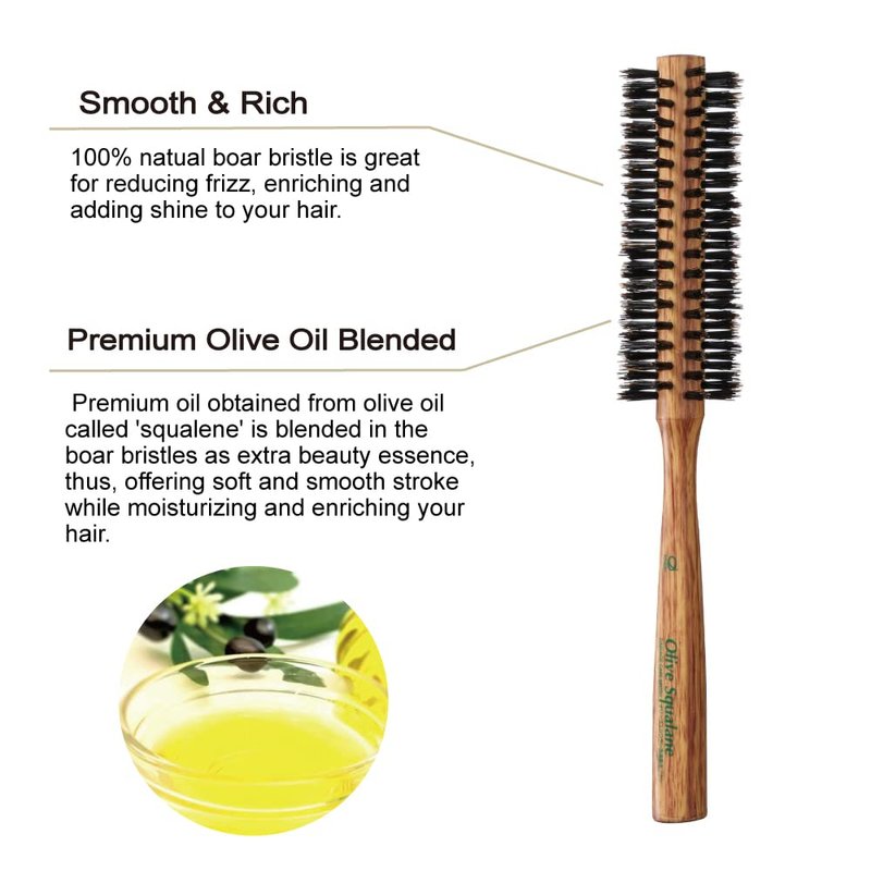 - [ Premium Olive Oil Blended ] Premium oil obtained from olive oil called 'squalene' is blended in the boar bristles as a beauty essence, thus, offering a soft and smooth stroke while moisturizing and enriching your hair.