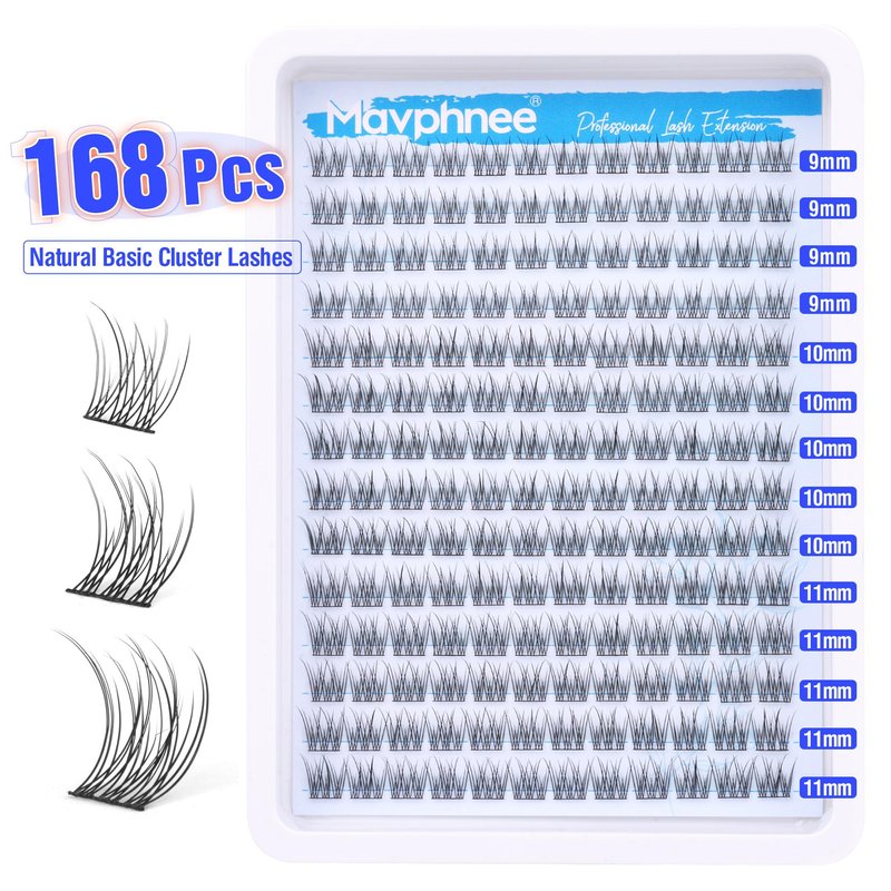 - Natural Wispy Lash Cluster Kit: Mavphnee lash extension kit designed to effortlessly achieve natural wispy lash looks, featuring 168 pcs of natural cluster lashes, strong hold lash bond and seal, and professional eyelash tweezers for your convenience.