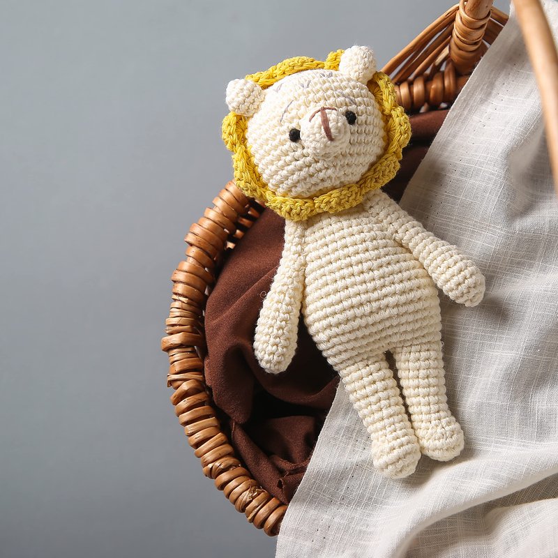 - 🦁 MATERIAL AND SIZE - 100% super soft cotton thread crochet with hypoallergenic padding inside. The size is about 18.5 cm (7.28 inches) from top to toe (include ears). Perfect for babies' tiny hands.