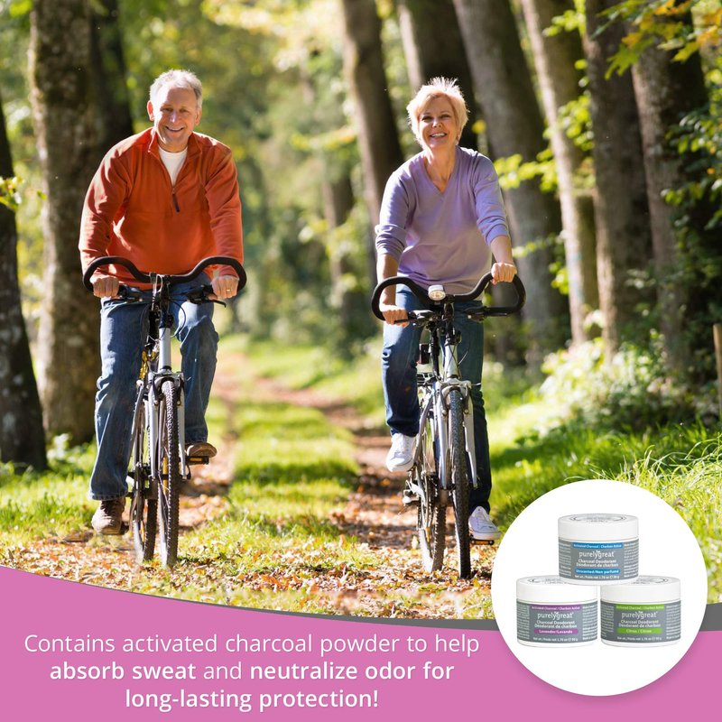 All Natural Protection That Lasts the Entire Day Purelygreat natural deodorant provides all-day odor protection without the use of harmful chemicals. Made without parabens, aluminum or triclosan, rest assured this all natural deodorant is safe for your health. Purelygreat deodorant is made with only pure ingredients and is naturally scented with pure essential oils. Ingredients: Baking Soda Vegetable Glycerin Corn Starch (non-gmo) Plus Charcoal and Essential oils: Grapefruit, Orange, Geranium, Cypress, Lavender, Coriander