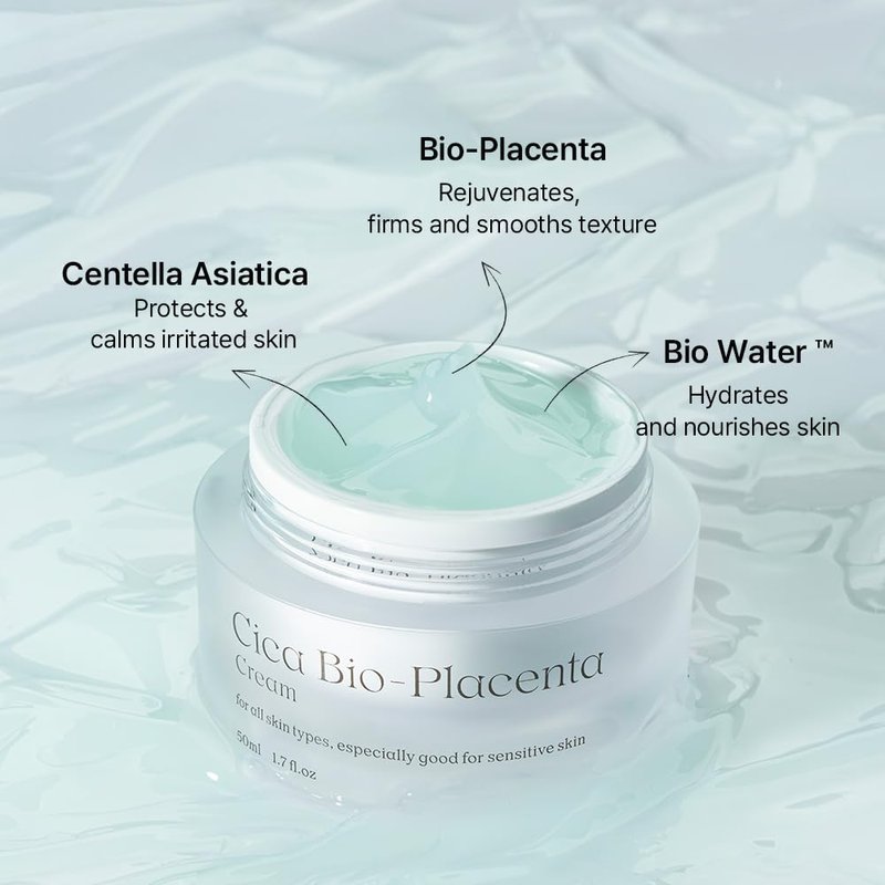 - [Centella Asiatica, Bio-Placenta and 95% Purity Madecassoside Blend] - Our Cica Bio-Placenta Cream gently smooths texture, improves skin elasticity, and soothes irritation all while providing long-lasting hydration.