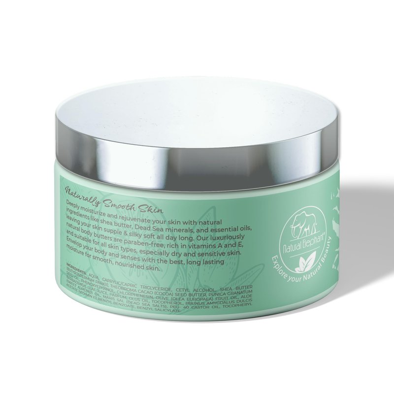 Pamper yourself with the opulence of our exquisite Natural Elephant Shea Body Butter, meticulously crafted with a rich fusion of high-quality shea butter, revitalizing Dead Sea minerals, and a harmonious medley of nourishing natural plant oils. Embrace a luxurious skincare experience as our indulgent body butter envelops your skin in a cocoon of deep hydration and sumptuous nourishment. Immerse yourself in the velvety texture that leaves your skin irresistibly smooth, supple, and profoundly moisturized throughout the day. Elevate your everyday skincare regimen to a transcendent spa-like ritual, where each application of our Shea Body Butter becomes a moment of self-care and rejuvenation. Let the enchanting blend of premium ingredients transport you to a realm of indulgence and tranquility, transforming the mundane into a lavish experience. Treat your skin to the epitome of luxury it truly deserves, embracing the lavishness that only the finest natural elements can provide. With our Natural Elephant Shea Body Butter, lavish your skin with the utmost care and devotion, ensuring it receives the royal treatment it craves for a radiant and deeply nourished complexion.