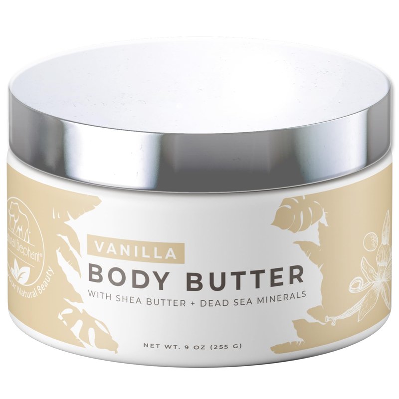 Natural Elephant Body Butter with Shea Butter, Dead Sea Minerals & Vitamin E - Luxurious Moisturizer, Hydrating Cream, Cruelty-Free, Paraben-Free, 9 oz (Vanilla)