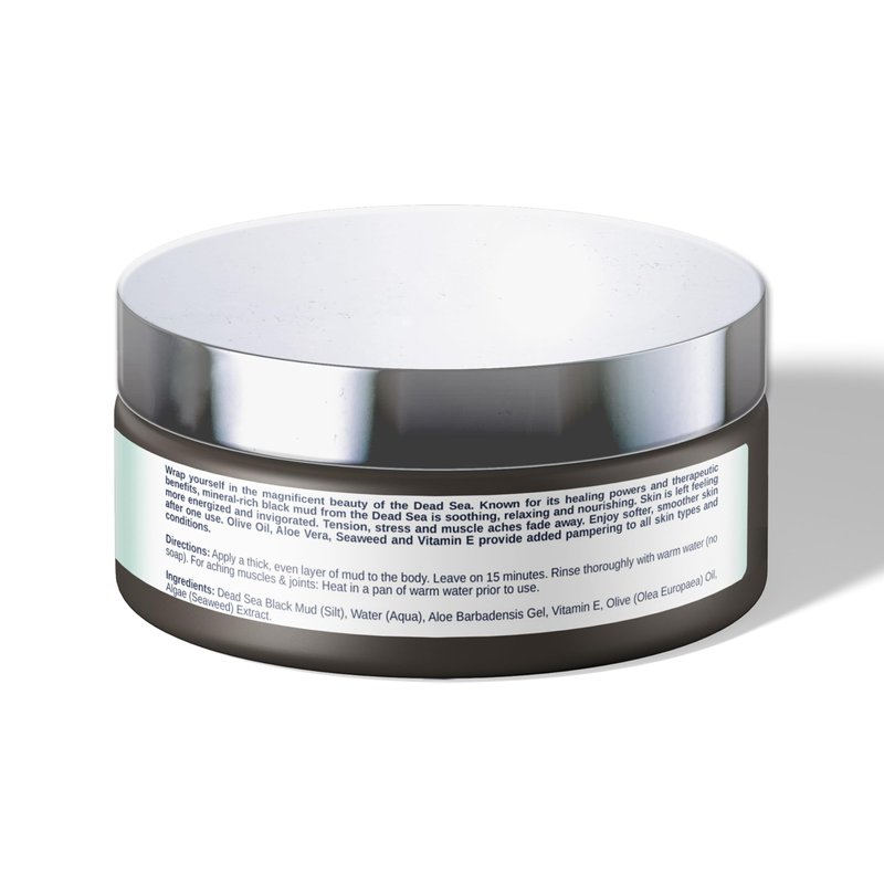 Wrap yourself in magnificent health and wellnedd with Natural Elephant's Dead Sea Mud Mask. Known for its healing powers and therapeutic benefits, mineral-rich black mud from the Dead Sea is soothing, relaxing and nourishing. Your skin is left feeling more energized and invigorated. Tension, stress and muscle aches fade away. Enjoy softer, smoother skin after one use. Olive Oil, Aloe Vera, Seaweed and Vitamin E provide added pampering to all skin types and conditions. HOW TO USE: Body: Apply a thick, even layer of mud to the body. Leave on 15 minutes. Rinse thoroughly with warm water (no soap). For aching muscles & joints: Heat in a pan of warm water prior to use. Face: Before you apply the Dead Sea mud to your face, clean your face thoroughly with water and open your pores with a warm cloth. Apply even layer on face; avoiding the thinner tissue around the eyes. Leave on for 12-15 mins. Remove with warm water.