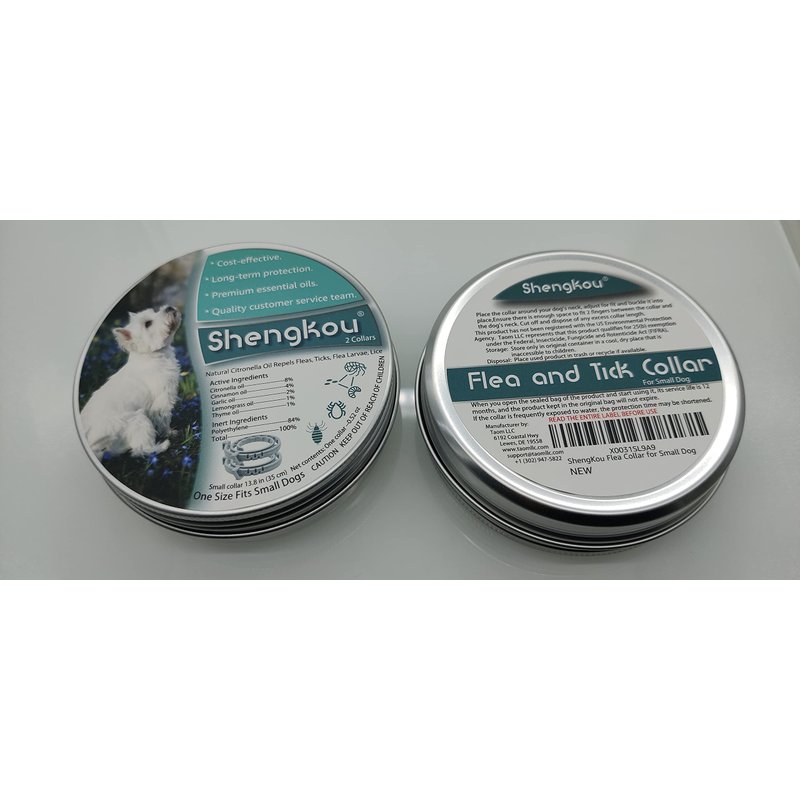 COST-EFFECTIVE PEST SOLUTIONS. Two flea and tick collars, a flea comb, and a tick tweezer save you money and efficiently solve your pest problem. SAFE AND NATURAL TREATMENT COLLARS. ShengKou collars use advanced technology to refine essential plant oils into a PVC carrier to reduce chemical irritation. Still, they are not suitable for pets that are sick or have skin allergies. NICE SCENT. ShengKou collars have a citronella scent that usually lasts two to three weeks. If your pet doesn't like the smell, you can open the sealed bag and use it two to three weeks later. PROTECTION TIME. Each collar has a protection time of about six months. Although the collar is waterproof, if often played in the rain may shorten the protection time. WATERPROOF COLLAR. Product active ingredients have been integrated into the PVC carrier, will be slowly released, and distributed in the pet skin oil layer to achieve the purpose of pest repellent; note: the weakening of the smell does not mean that it does not work. The safe breakpoint design can make it your pet easy to get out of trouble. Shipping with FBA will enable you to receive the goods as soon as possible.