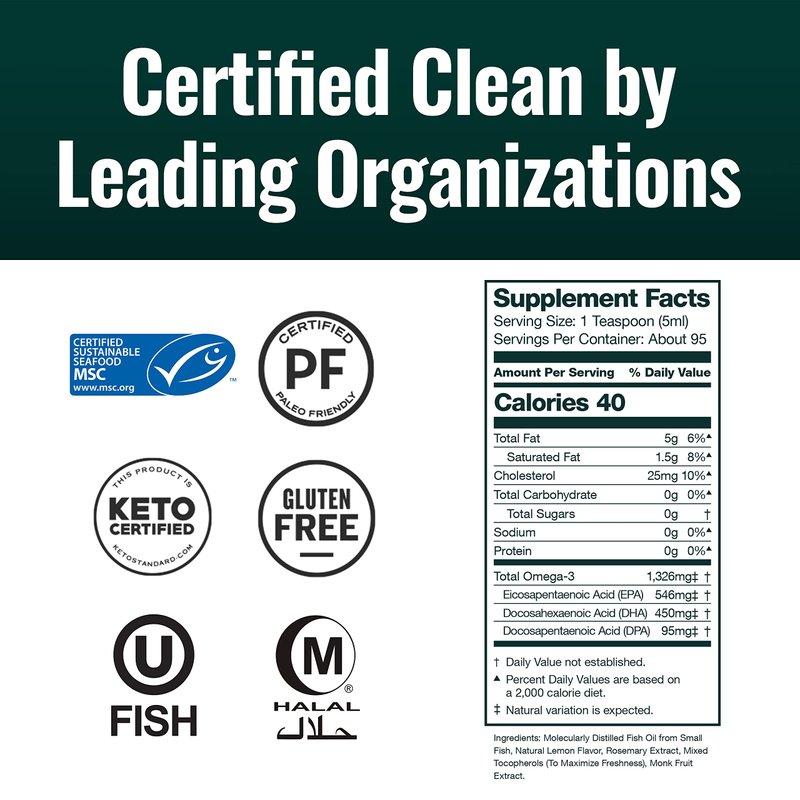 - Marine Stewardship Council Certified & Keto, Paleo, Kosher, and Halal – Natural Force Pure Omega-3 is sourced from a Marine Stewardship Council certified sustainable fishery. And, with all natural ingredients like rosemary extract, monk fruit, and zero sugar, it is also certified Keto, Paleo Friendly, Kosher, and Halal.