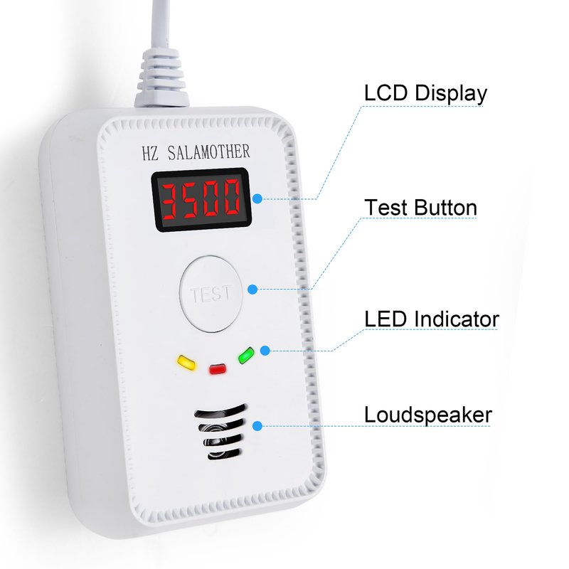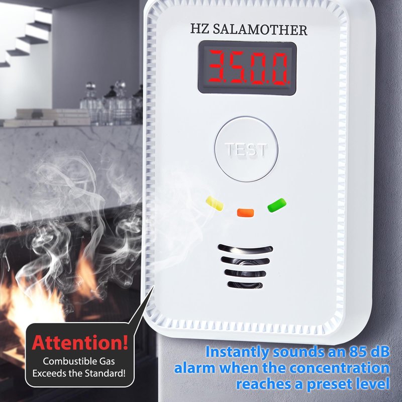 - 【Visual & Audio Gas Alarm】-When the natural gas or combustible gas concentration leaks reach a preset level, this natural gas leak detector will sound an 85dB alarm and display the dangerous gas concentration level;Gas detected alarm voice: “Attention please, gas leaking.