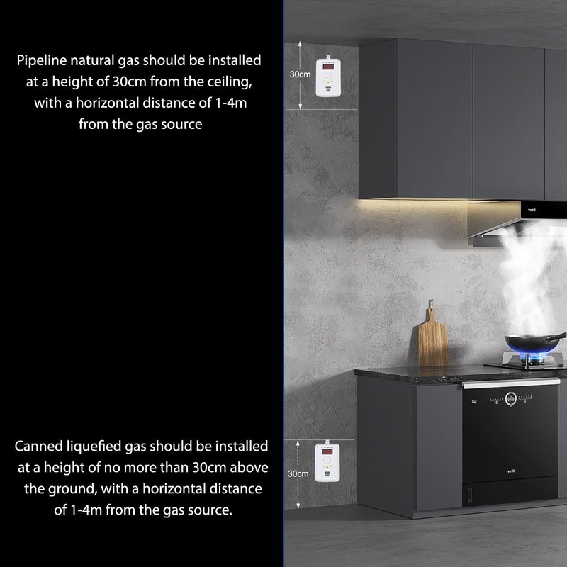 - 【Application】-Gas detectors for home natural gas, Suitable for detecting methane, natural gas, propane, and other flammable gases. It is widely used in homes, kitchens, garages, travel trailers, campers, food trucks, restaurants, hotels, and so on. This gas detector can decrease the risk of harm resulting from gas leaks, protecting you and your family.