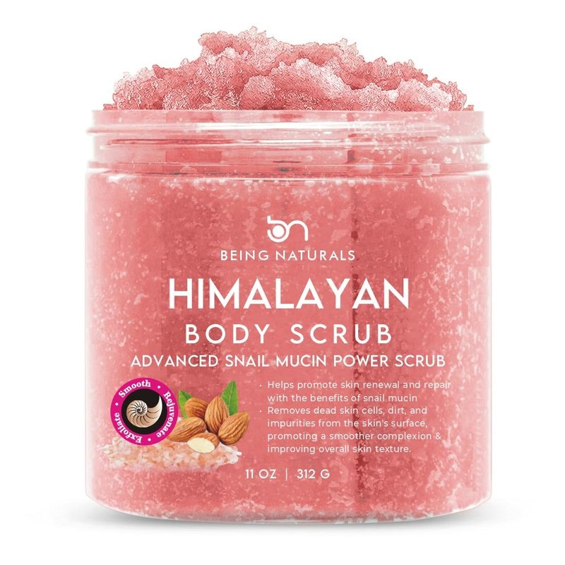 Natural Himalayan Salt Body Scrub - with Lychee Oil and Snail Mucin, Exfoliating Salt Scrub to Exfoliate & Moisturize Skin, Deep Cleansing - 11 oz
