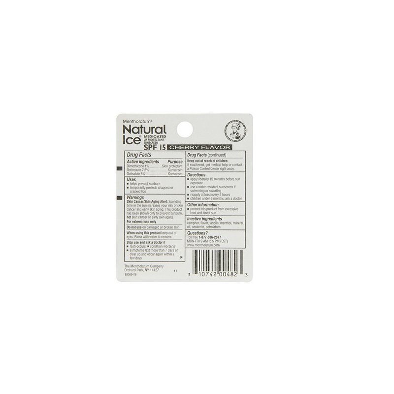 Natural Ice Medicated Lip Protectant/Sunscreen SPF 15 Cherry 0.15 oz (Pack of 6)