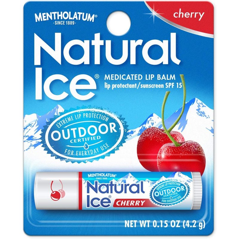 Mentholatum Natural Ice Cherry is a go-to lip balm for everyday family use, helping to protect lips from harsh environmental conditions. It has a natural cooling sensation that tells you it’s working. Its smooth glide-on formula with SPF 15 gives long-lasting protection and helps heal dry, chapped lips. NDC Code: 10742-1048-2
