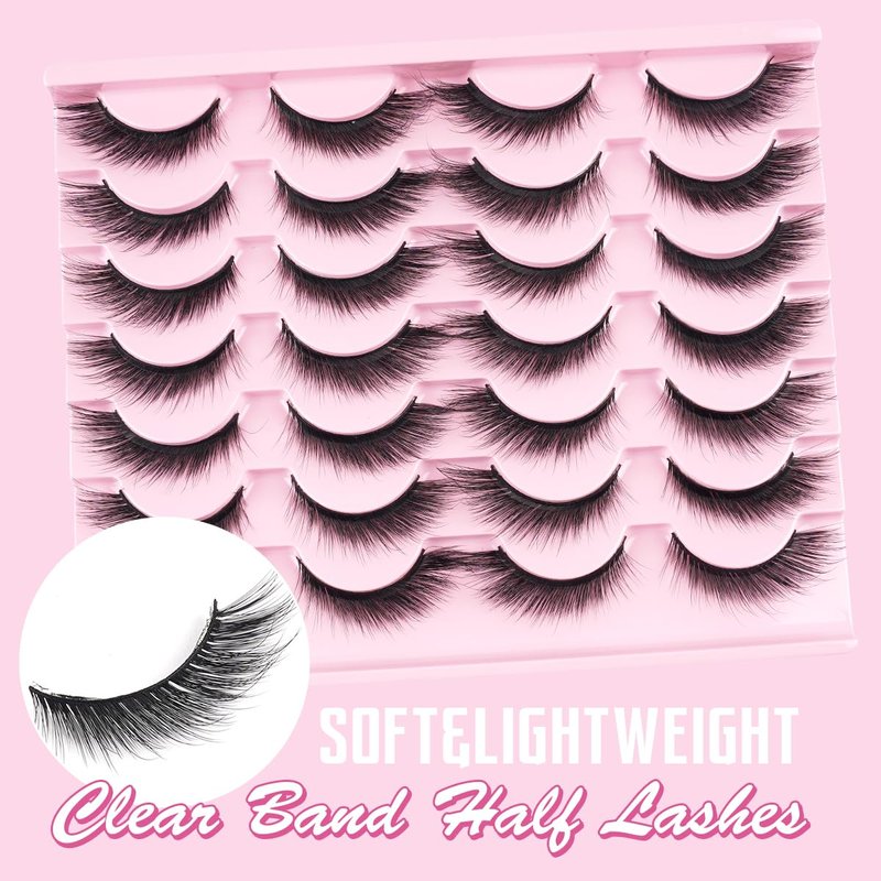 Elevate your makeup game with this pack of 14 pairs of natural-looking false eyelashes. These wispy lashes have a short, fluffy design that creates a subtle yet alluring cat-eye effect. The soft, lightweight mink material blends seamlessly with your natural lashes for a flawless, full-bodied look that's perfect for daily wear or special occasions. Whether you're a makeup artist or a beginner, these versatile lashes are easy to apply and remove. Embrace your natural beauty and add a touch of glamour with this affordable lash set.