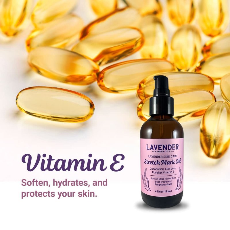 Natural Lavender Body Oil - Skincare with Vitamin E and Rosehip Oil for Stretch Marks, Scars, Pregnancy Must-Haves. Cream and Oils for Women, Dry Skin | 4oz