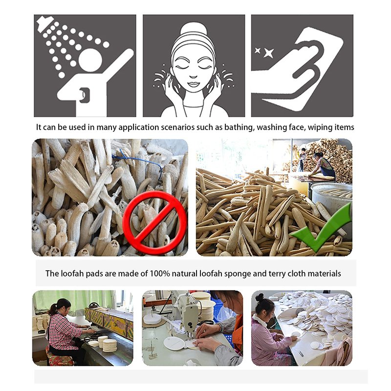 - Before use, soak the loofah sponge pad in warm water to soften the loofah fiber and make the sponge swell. The more the water is, the softer the loofah sponge pad will be. You can adjust the texture to wipe the skin according to your needs.