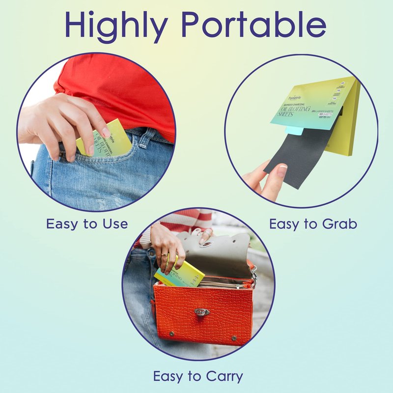 - ✓ 100% GURANTEED ORGANIC and TEAR RESISTANT FIBER MATERIAL! TAMETRIX Oil blotting sheets are formulated with 100% natural absorbent- bamboo charcoal. The durable face oil sheets are made from natural wood fiber pulp that lasts longer and is convenient to use — it won’t tear or shared