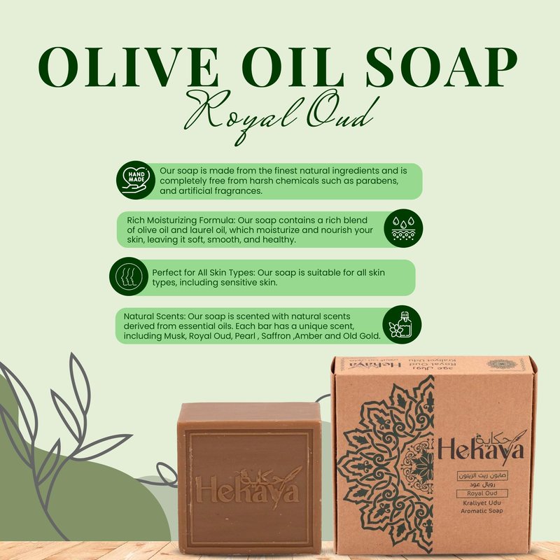 - Natural Scents: Our soap is scented with natural scents derived from essential oils. 4 to 4.5 % high quality essential oil scent, Each bar has a unique scent, including Musk, Royal Oud, Pearl , Saffron ,Amber and Old Gold. The natural scents are refreshing and invigorating, making your bathing experience more enjoyable.