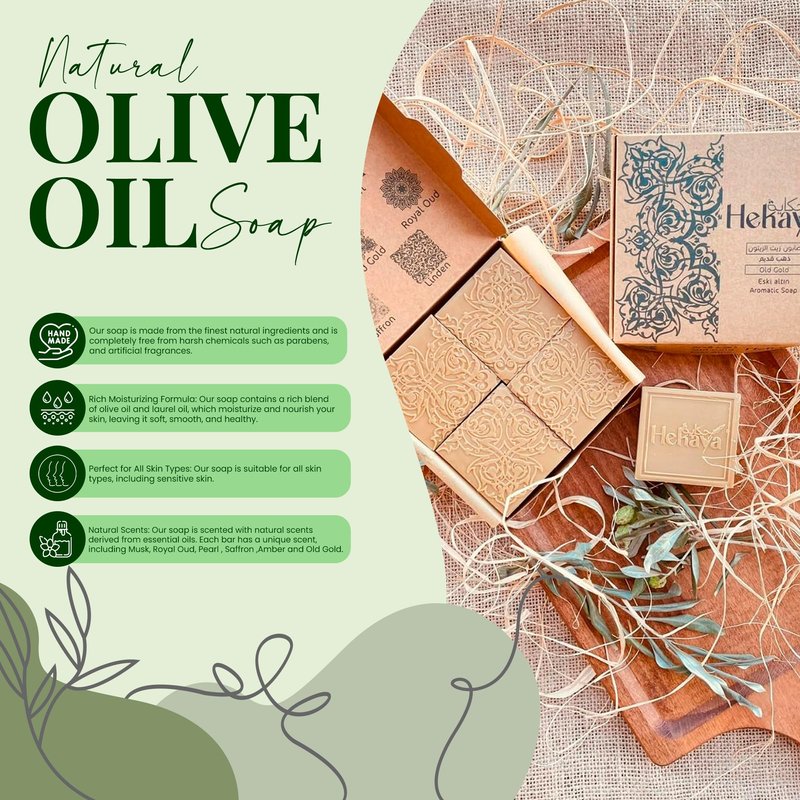 - Natural Scents: Our soap is scented with natural scents derived from essential oils. 4 to 4.5 % high quality essential oil scent, Each bar has a unique scent, including Musk, Royal Oud, Pearl , Saffron ,Amber and Old Gold. The natural scents are refreshing and invigorating, making your bathing experience more enjoyable.