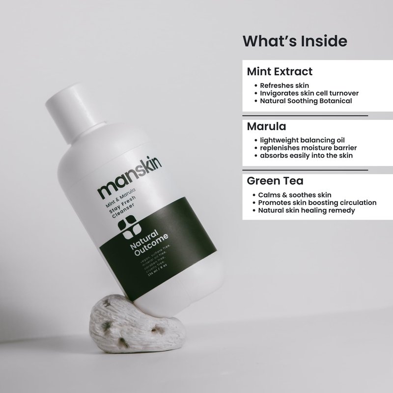 natural outcome Man Skin Face Wash Cleanser Skin Care - Mint & Marula Refreshing Facial Cleansing Gel For Men Sulfate Free 8 oz