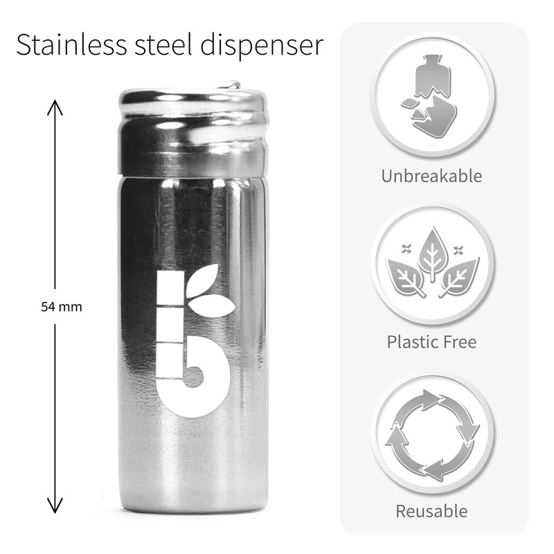 - Refillable Stainless-steel dispenser with integrated floss cutting lid