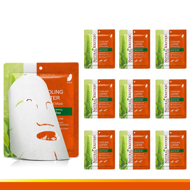 Natural Solution Cooling Luster Silk Facial Mask With Aloe & Tea Tree,Deep Pore Cleansing Face Mask,Instant Brightening and Hydrating - 10 PK
