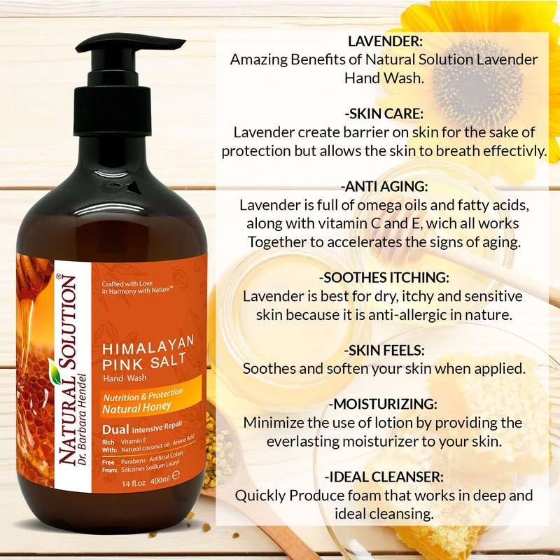 - Natural solution offers organic hand wash that is formulated using honey and Himalayan pink salt. Liquid hand soap provides nutrition and dual intensive repair and protection for skin.
