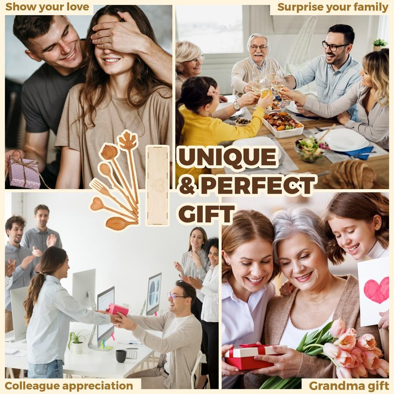 Natural Wooden Spoons and Forks Set (Set of 6), Valentines Day Gifts for Her, Cooking Gifts for Mom, Hostess Gifts,Happy New Year Gifts, Easter Gifts for Mom