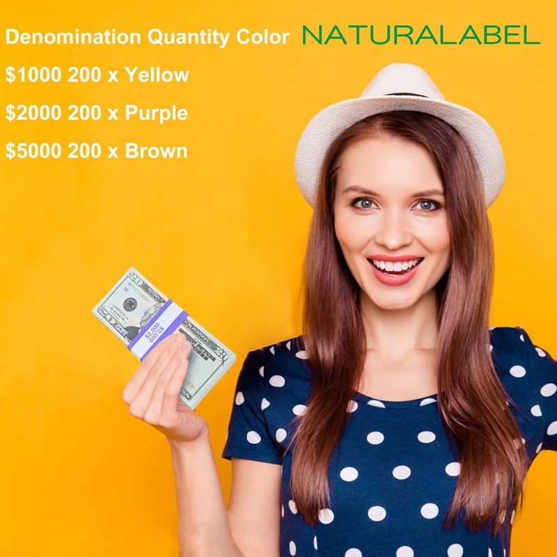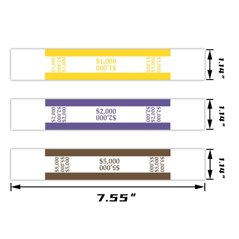 NATURALABEL 600PCS Assorted Currency Straps for Bills, Money Bands for Cash $ 1000, 2000, 5000, 200 of Each, Self Adhesive Money Band Bill Wrappers Money Paper Wraps