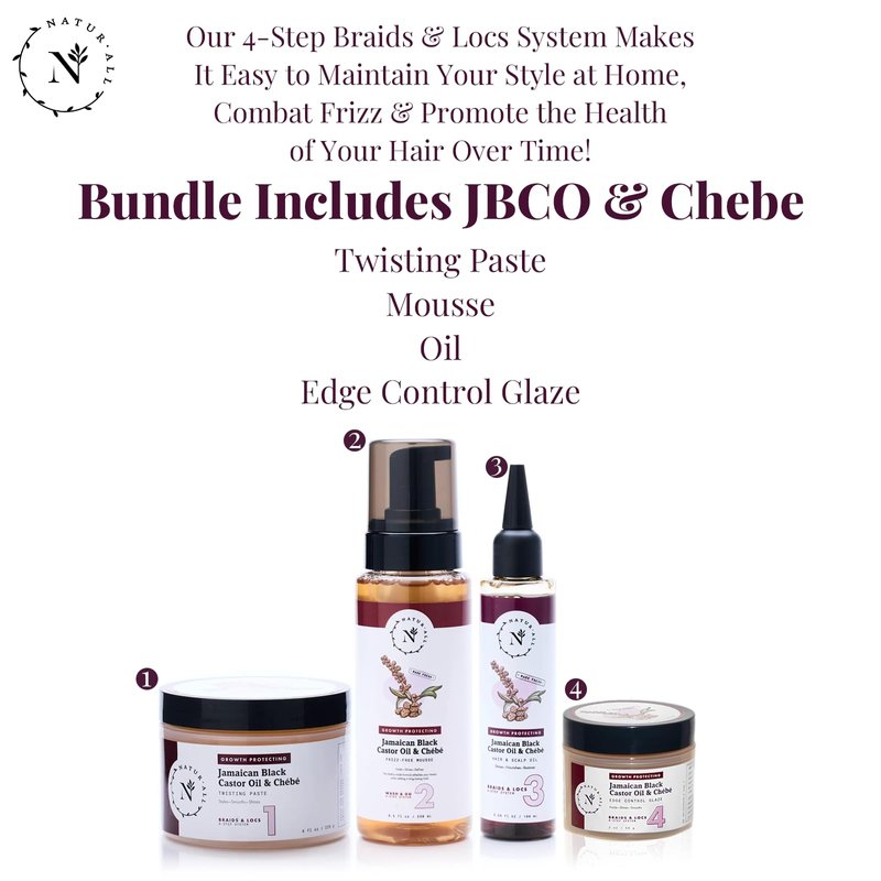 ABOUT THE BRAND: NaturAll is a brand known for its natural and sulfate-free hair care products. Our hair experts believe every hair type is unique and needs special care and attention, so our products aim to strengthen, repair, and make your hair look consistently beautiful. ABOUT THE PRODUCT: Our Jamaican black castor oil is formulated with Jamaican black castor oil, chebe oil, and other natural extracts to help nourish your hair. It contains no sulfates, silicones, parabens, or harmful chemicals. Therefore, it will not cause any damage to your hair. Instead, it will boost hydration, tame frizz, reduce breakage, and add shine to your beautiful curly hair. A perfect hair product to get perfectly styled braids or locs! PRODUCT FEATURES: - Strengthening and Moisturizing Hair Growth Treatment - Infused with Jamaican Castor Oil & Chebe Oil - Free of Sulfates, Parabens, or Silicones - Perfect for Styling Braids or Locs - Improves Hair Texture and growth Place your order with us to get perfectly styled braids or locs.