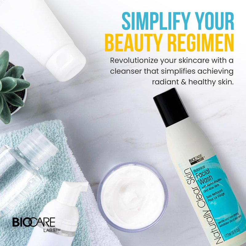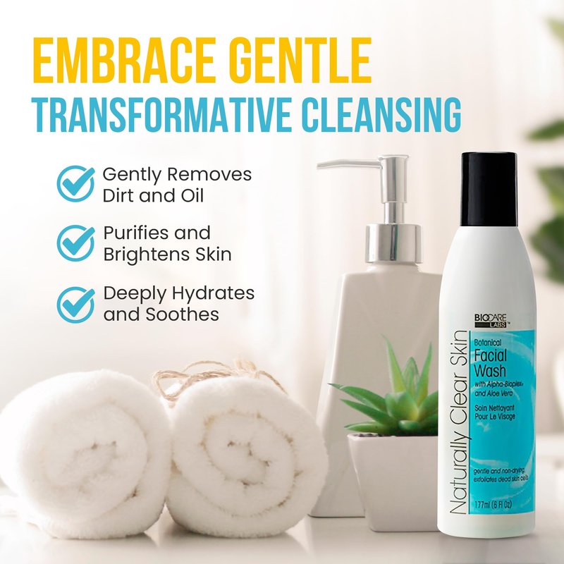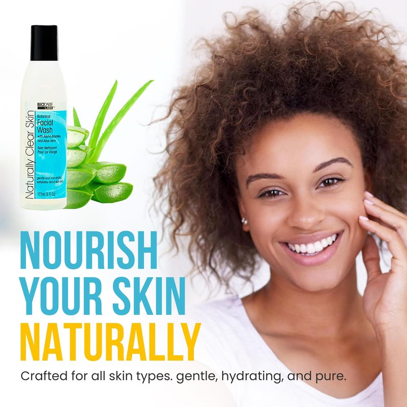 Naturally Clear Skin Botanical Facial Cleanser - Ultra Gentle Face Wash for Improved Complexion, Infused with Alpha-Bioplex for Anti-Aging, Soothing Aloe Vera for Deep Hydration 6 oz