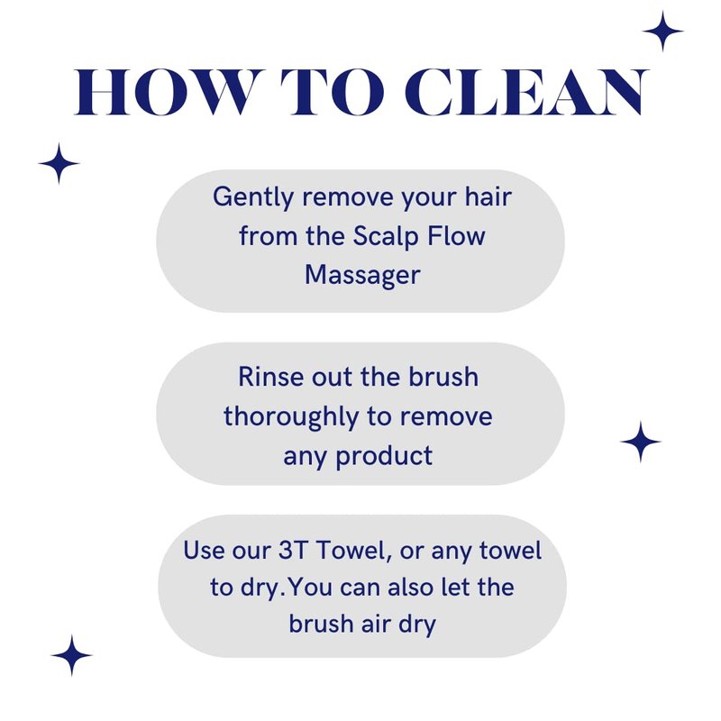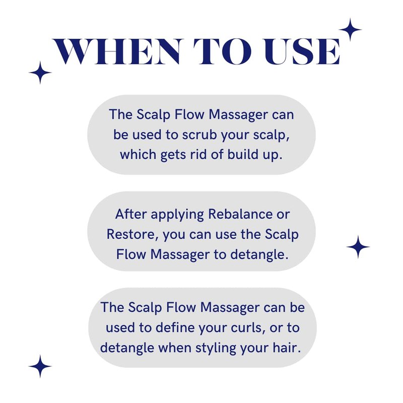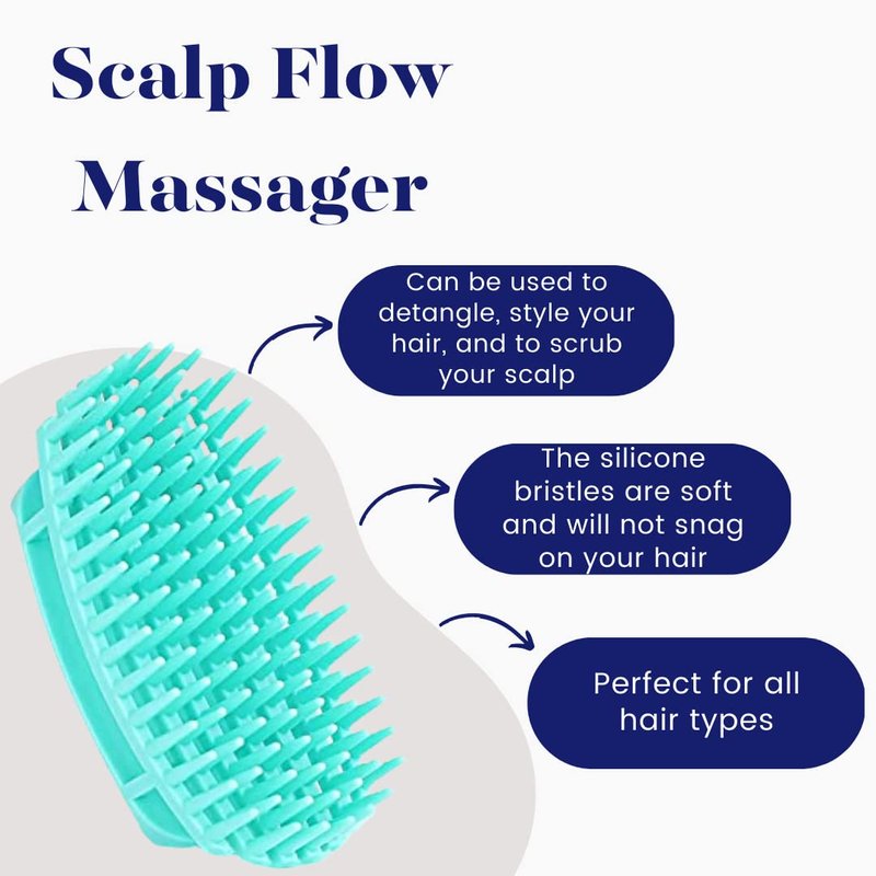 Welcome to Scalp Flow Massager description. Our detangling brush can be used to detangle, style your hair, and scrub your scalp. Our Scalp brush is perfect for all hair types. Key Benefits: Easy to hold: The non slip comfortable rubber grip is designed to give you comfortable control. Multi-Purpose: The detangling hair brush can be used to detangle, style your hair and to scrub your scalp. Gentle Bristles: The silicone bristles are soft and flexible, and will not snag on your hair. Easy to Clean: This detangle brush is made of high-quality material and only takes 3 steps to clean. When to Use: The Scalp hair brush detangler can be used to scrub your scalp, which gets rid of buildup. It can be used to detangle when you shampoo your hair, ensuring that your hair is cleansed. After applying Rebalance you can use the scalp hair detangler to detangle. Our Scalp Brush for Curly Hair can be used to define the curls or to detangle when styling your hair. How to Clean: Gently remove your hair from the scalp brush for curly hair. Rinse the scalp hair brush thoroughly to remove any product. Use our 3T Towel, or any towel to dry. You can also let the brush air dry. Now the Scalp Flow Massager is ready to be used again. FEEL FREE TO CONTACT US IN ANY CASE. YOUR NEEDS AND SATISFACTION ARE OUR FIRST PRIORITIES