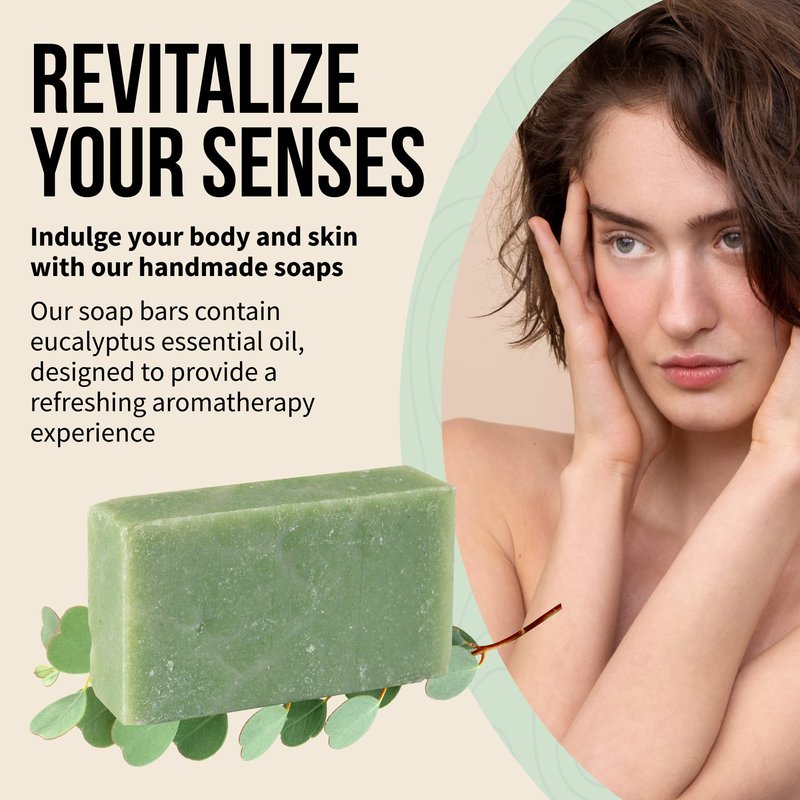 - REVITALIZE YOUR SENSES: Our soap bars contain eucalyptus essential oil, designed to provide a refreshing aromatherapy experience; Indulge your body and skin with our handmade soaps, crafted using a combination of essential oils that effectively cleanse dirt and impurities while maintaining your skin's moisture